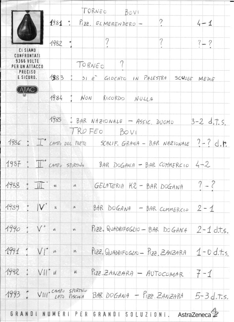 Dall’81 compiamo un salto in avanti di sette fino ad arrivare all’edizione del “Trofeo Bovi” del 1988, dove riprendono voce i documenti a nostra disposizione.